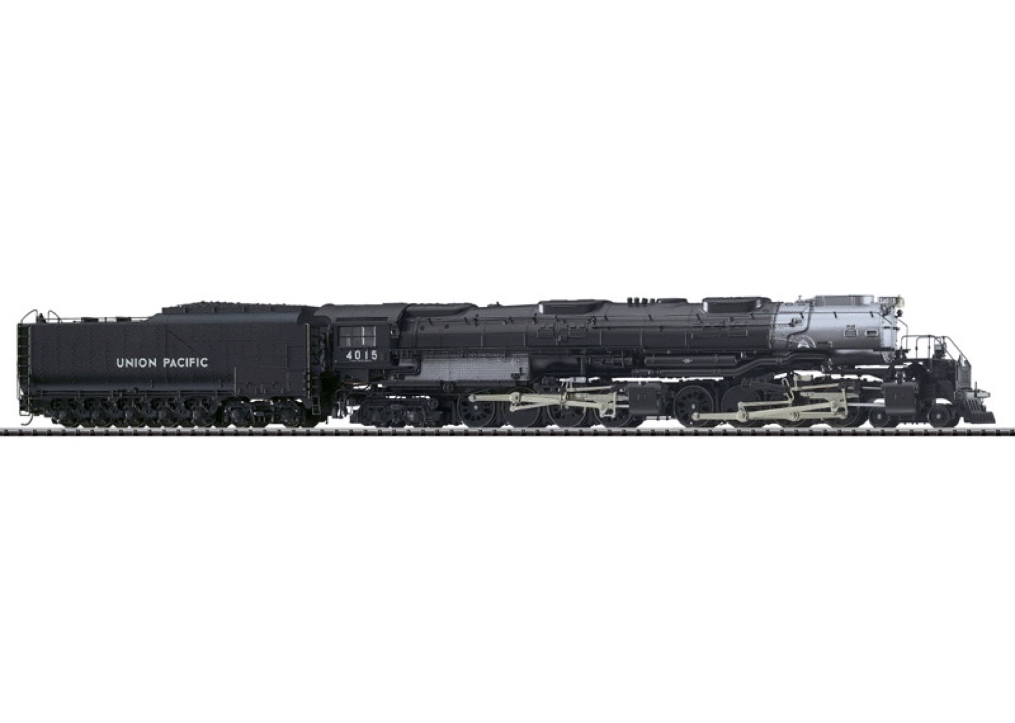 Modell: Epoche III, in neuer, überzeugender Trix-Technik: • Fahrgestell, Kessel und Tender aus Metall. • Hochleistungsmotor mit Glockenanker und Schwungmasse im Kessel. • Serienmäßig mit eingebautem DCC-Decoder. • Serienmäßig mit eingebautem Geräuschgenerator nur für Digitalbetrieb. • Stirnlampe, Tender und Nummerntafeln mit wartungsfreien LED beleuchtet. • Kurzkupplung zwischen Lokomotive und Tender. • Serienmäßig mit RP 25-Profil und Kadee-kompatibler Kupplung Kurvengängiges. Gelenkfahrwerk mit Boxpok- Rädern, 8 Achsen angetrieben, mittlere Kuppelachsen federnd gelagert, stirnseitig Kupplungshaken im Schienenräumer einsteckbar, Dampfleitungen schwenkbar mit den Zylindern ausgeführt, angesetzte Griffstangen aus Metall, viele angesetzte Einzelheiten, Figuren Lokomotivführer und Heizer für den Führerstand liegen bei. Beiliegende Märklin-Kurzkupplungen. LüP 465 mm.