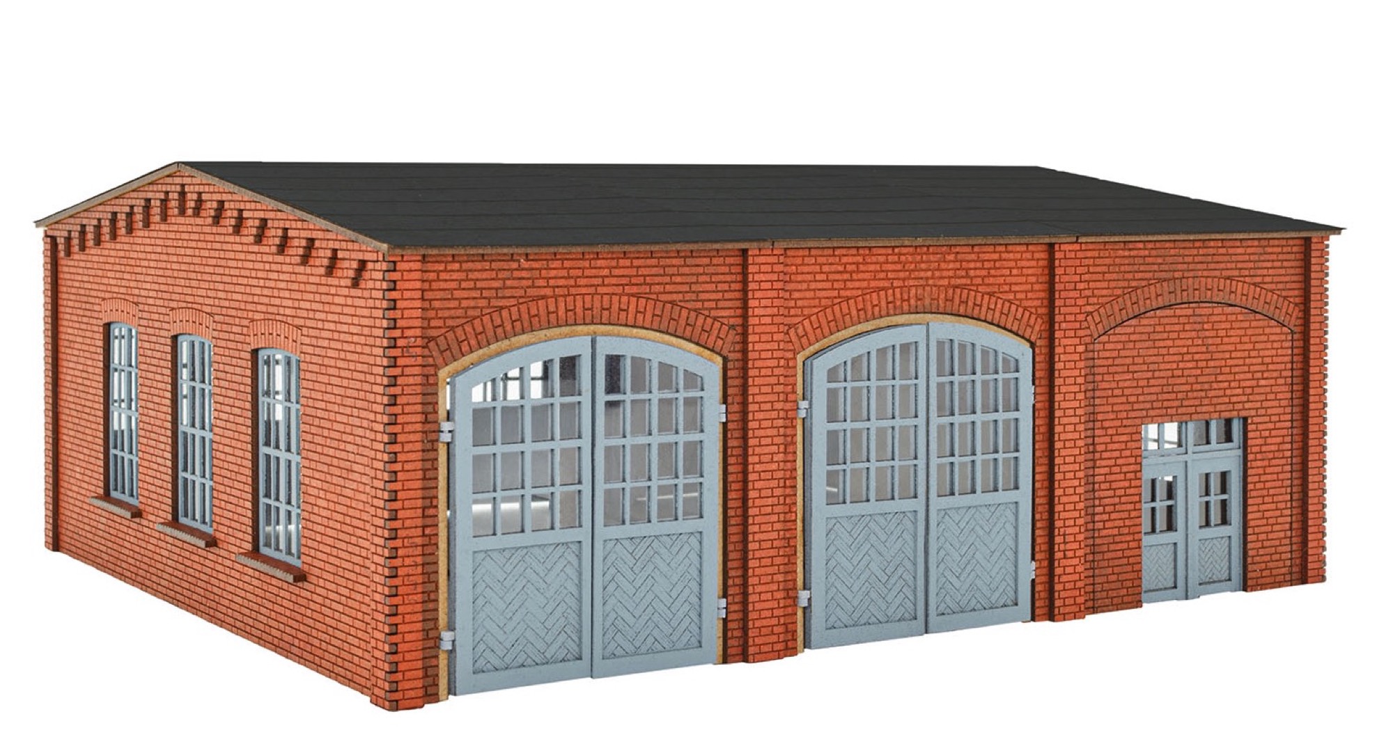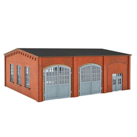 Product information "N Truck workshop - Polyplate kit" Timeless workshop building made of Polyplate composite material. The worshop is expandable with item 47563 (1 door element each). L 9.3 x W 8.1 x H 3.9 cm